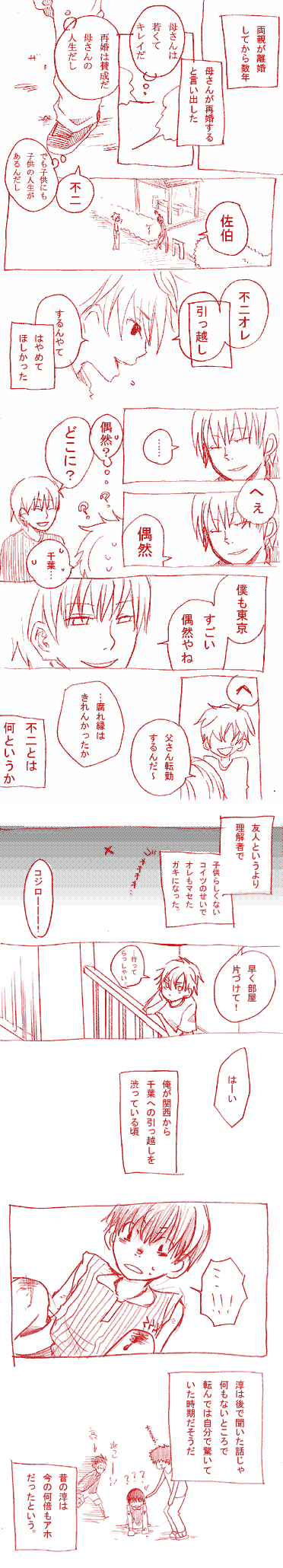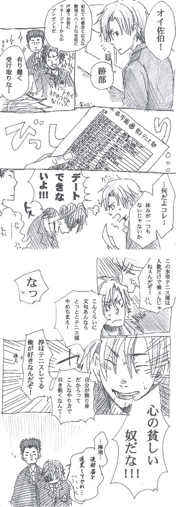 イベントパンフのアンケ身内と盛り上がって書いたみかん漫画Xmas(転校したて設定)当時サイト名ジェンダで空彦でした。ステンシル--------------------CP色つよい--------------------サエキサとか1P漫画パラレルサエキサ過去妄想転校(大阪でふじと幼馴染)転入小学中学高校(佐伯、氷帝に進学)卒業就職(小説家と肉体労働?)
